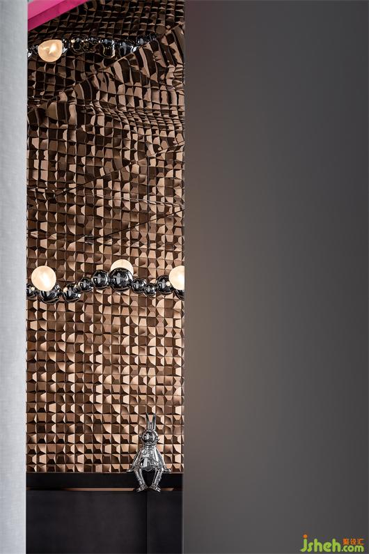 金属拉丝质感的材质在空间中延伸着,顶面接缝线,被平滑的弧面行李舱造型所替代,空间的未来感以一种温和的方式,被一点点释放出来。