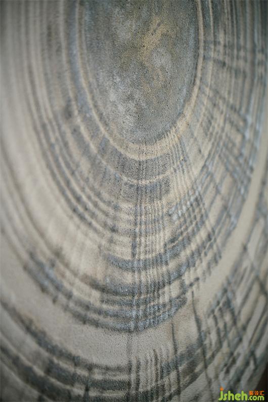 硬装用调性、脉络走向一致、灰度有差异的石材构筑立柱和墙体,其丰富的肌理,恍如被岁月的流水浸润、冲刷过的样子,让冰冷的墙体变得亲切、有温度而可以触摸。