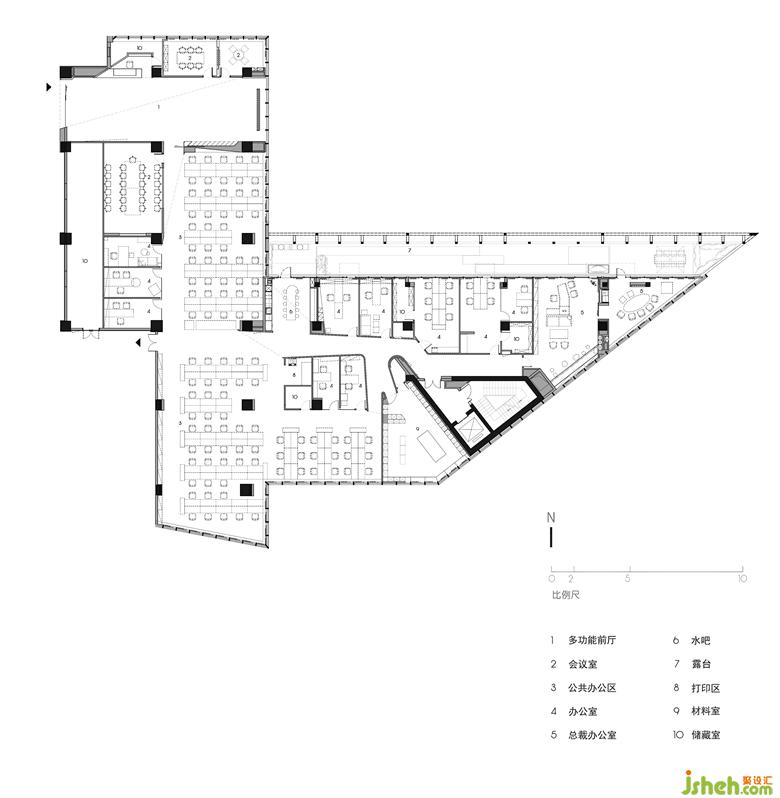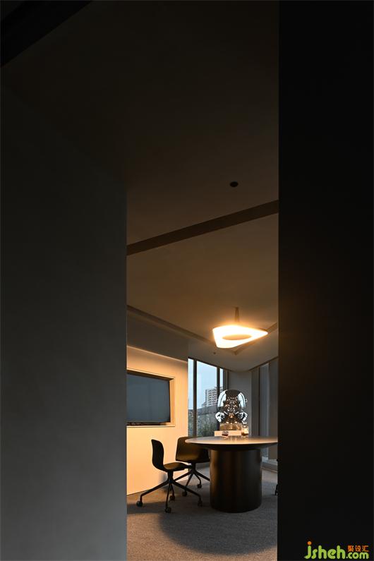 A nearly 30-meter-long narrow terraceis designed outside the office, with one end connecting to the tea area, and the other connecting to the founder's office. The terrace corresponds to the white corridor inside, forming a complete closed loop. A sense of natural wildness is felt, as the terrace is covered by gravels and Pennisetum. On one side of the terrace is the quiet campus of Guangzhou Academy of Fine Arts, while on the other side of the glass curtain wall is the bustling urban scene.