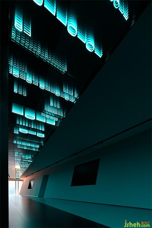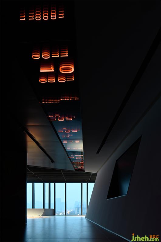 顶面的设计,依托于黑色的环境底色,使或红或绿的二进制数据以更耀眼的方式显现。