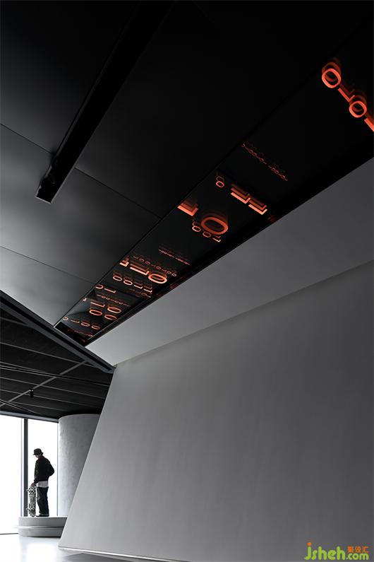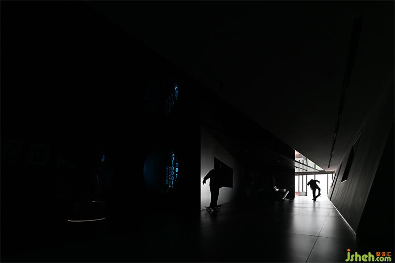 它在空间内部连接黑暗与明亮的两端,前者象征着数字网络世界的虚拟,后者代表着现实生活状态的具体与真实。