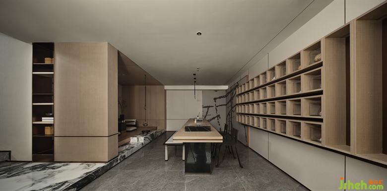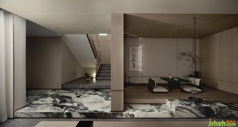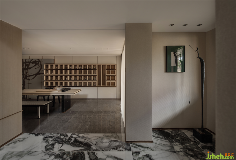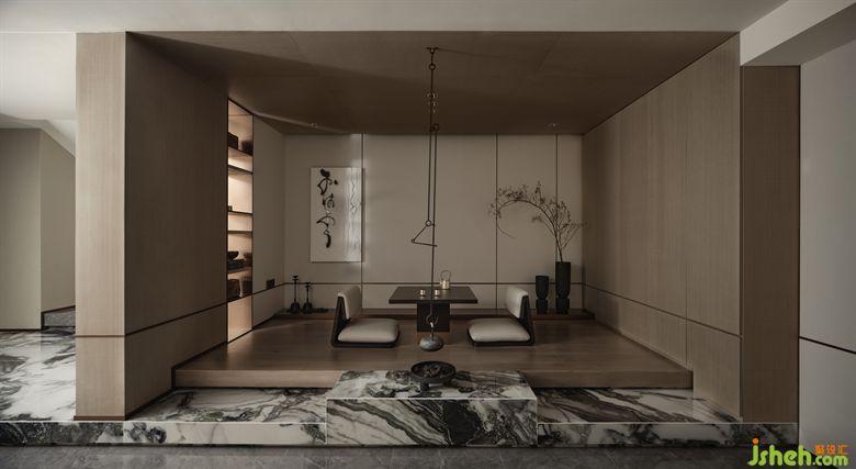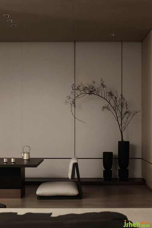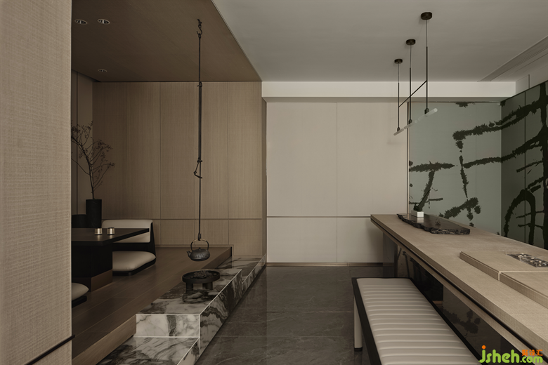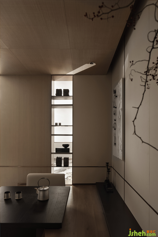 一个清幽的场域,形成于茶室与多功能空间的对映之中。