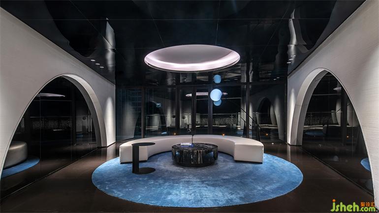 带着未来感的流线如宇宙中最具美感的天体——星云,会所设计将一层大堂的空间律动变得轻盈柔和。