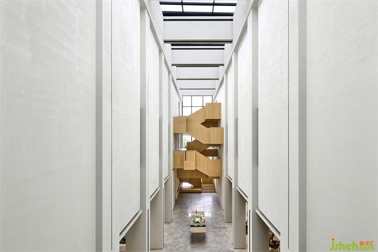 将垂直交通作为漫游的路径, 大厅中的楼梯犹如一个具有象征意义的结构,向老糖厂的楼梯致敬。