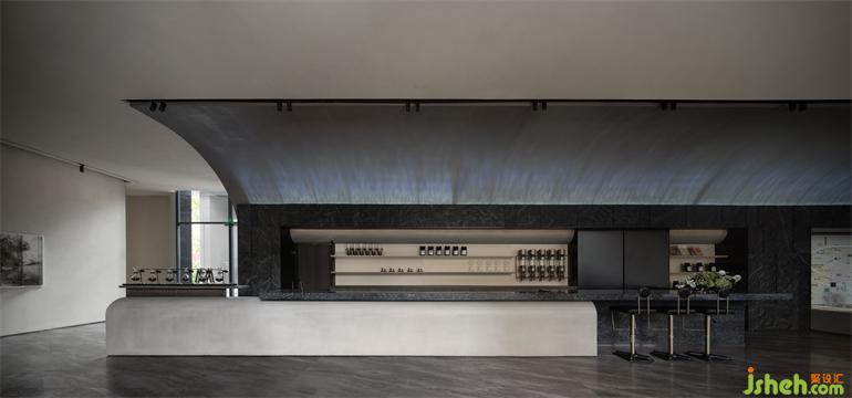 咖啡店是实现宜居性与度假感的空间载体。既能兼顾项目前期的地产销售功能,也能在更长远的未来成为业主私人生活与城市文化日常相互叠交与转换的中间地带。它介于日常与度假之间,隐匿在市井与街头之内,是具体日常生活的延伸,是喧嚣与静谧的自然过渡。