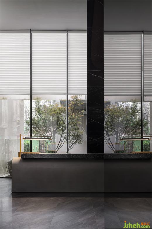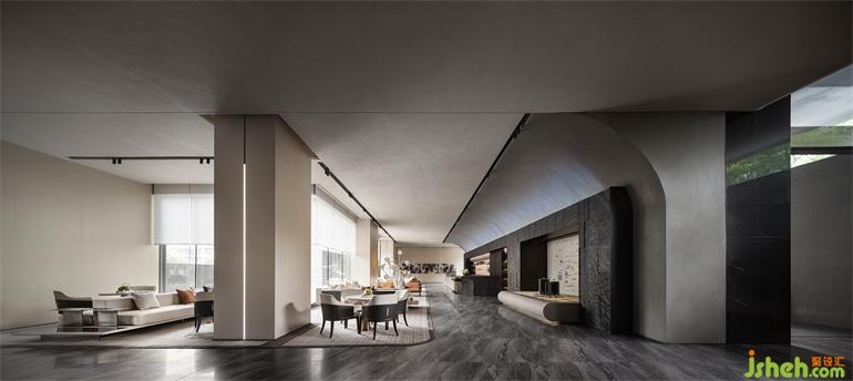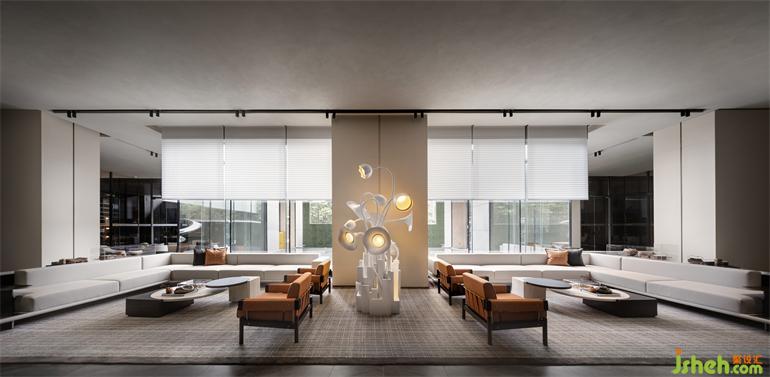 项目地处成都一环老城区,背靠城市在地文化中心——宽窄巷子。销售中心设计师结合城市区位优势以及项目酒店式配置的物业特性,以“都市度假”为灵感来源,在空间呈现中创造性地将宜居性与度假感相结合,使城市独有的文化气息纳入日常生活的背景,以隐逸的方式实现着精神上度假。