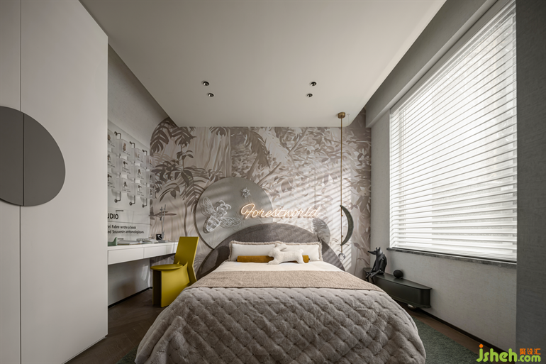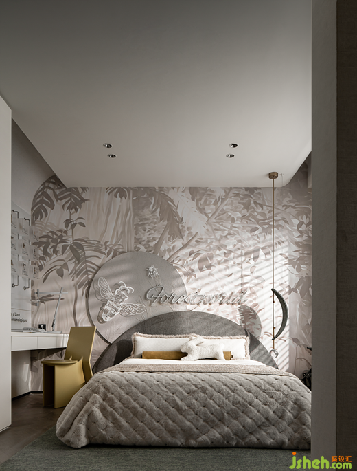 样板房设计将森林、秘境、昆虫等奇幻概念置入环境,随心探秘。正如卡尔维诺在《魔法戒指》中所说:“他本想问魔戒要一匹马,可森林实在太美了,它更想用自己的双脚去探索这片土地”。对孩子的空间而言,昆虫博物馆以探索性的感官世界开启空间主题,样板房设计借力于自然并超越自然,将想象、好奇、勇气之心唤起,启发他们对自然天真的热望。
