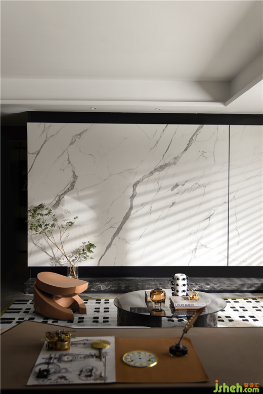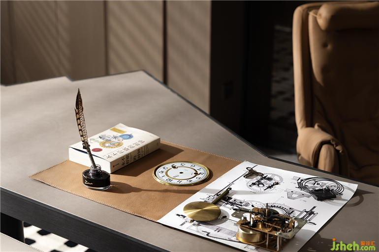 一件零件、一个齿轮、一块金属都代表着主人精密、严谨、品质的生活态度。我们提取元素,样板间设计将“形”和“质”两方面以当代艺术手法融合,在空间进行碰撞,衍化新生。