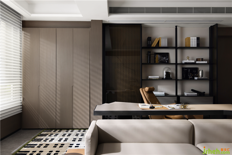 随着空间的变化,情绪也会随之展开,软硬装一体搭配,选用与机械匹配度较高的咖棕色,为空间的主基调。