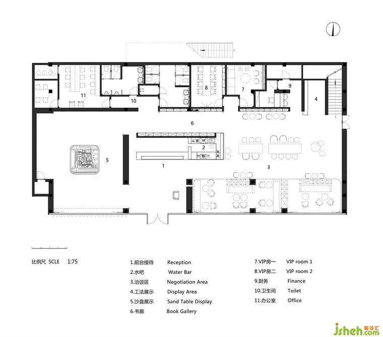 景观长廊在休憩与游走之间,营造出一种与植物、自然、微缩景观相互共生的空间场景。北京售楼处设计木色平稳温和,植物绿意盎然,暗示着,生活的具体形态正在从公共性转向个体性、从外部世界转向内心之所,巧妙地完成了多重意义上的过渡与连接。