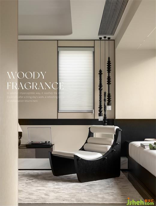主卧的气质谦逊而优雅,当代的极简线条里,隐隐透露出几许复古的艺术趣味。木质调的芬芳,以另一种不易察觉的方式,安抚着驳杂的心绪。尤其在结束一日的疲劳工作后,一种沁入心脾的复苏感在这里得到回应。