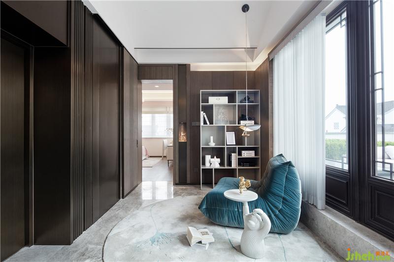 一层内间享有庭景的儒雅居室便是老人房。一窗、一门、一画,清简的线条于岁月相匹配,中性色调的卧房带给长者平静与安宁。