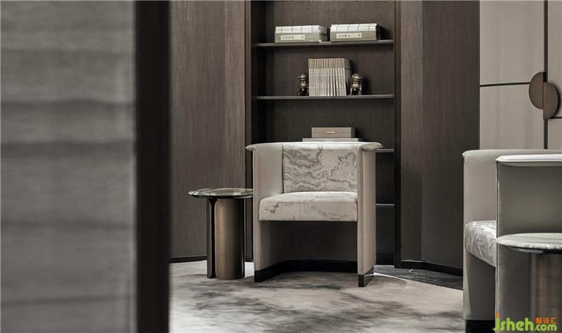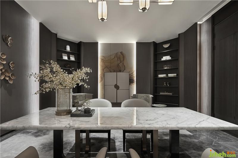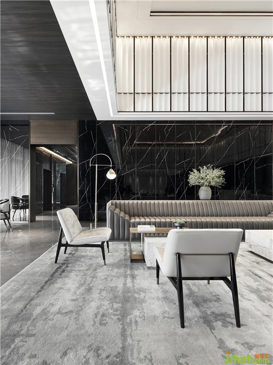 VIP签约室则更为儒雅,木纹墙面沉着自持,艺术布面赋有堆叠层次的水墨晕染为空间画龙点睛,也延续了运河为主轴的精神内在。会所设计