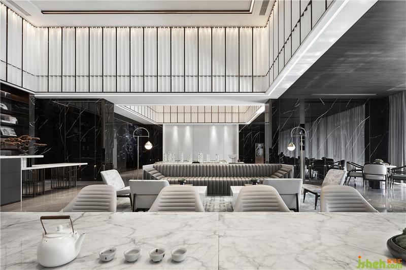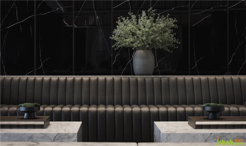 不同的座椅配置和场域分布,为各类人群提供多样选择。边侧的水吧台俨然一幅镜花水月的美妙意象,令人暂时放下疲惫,置身其中。会所设计