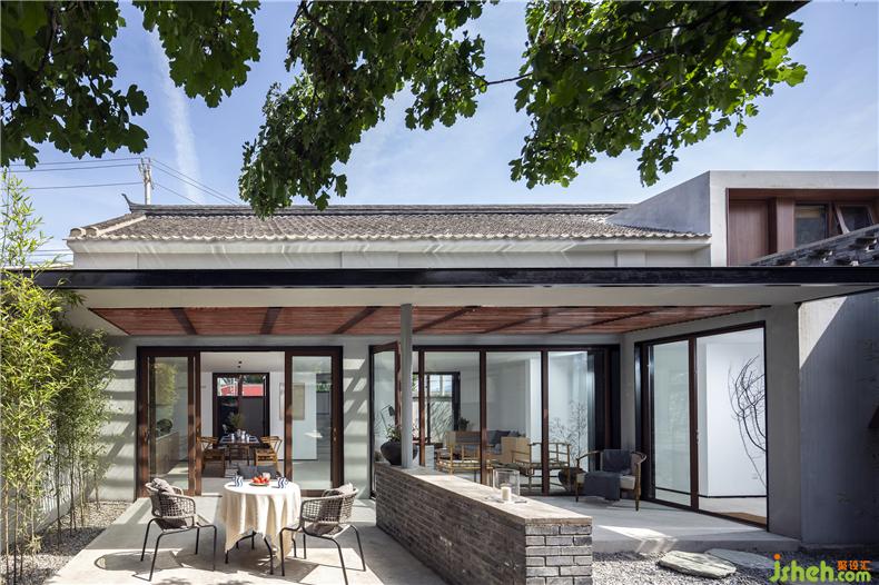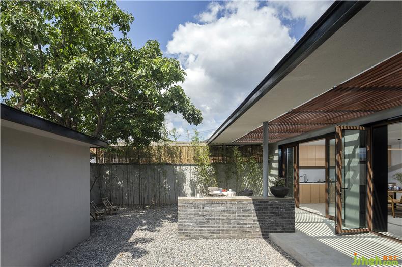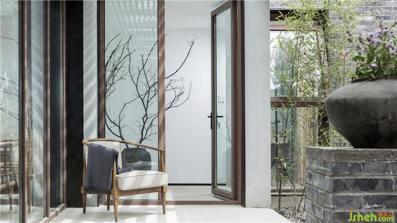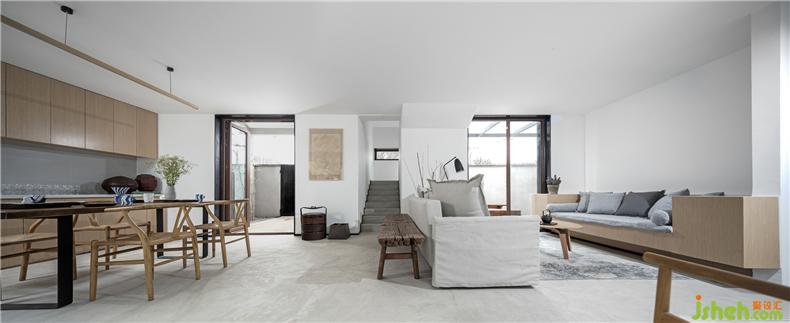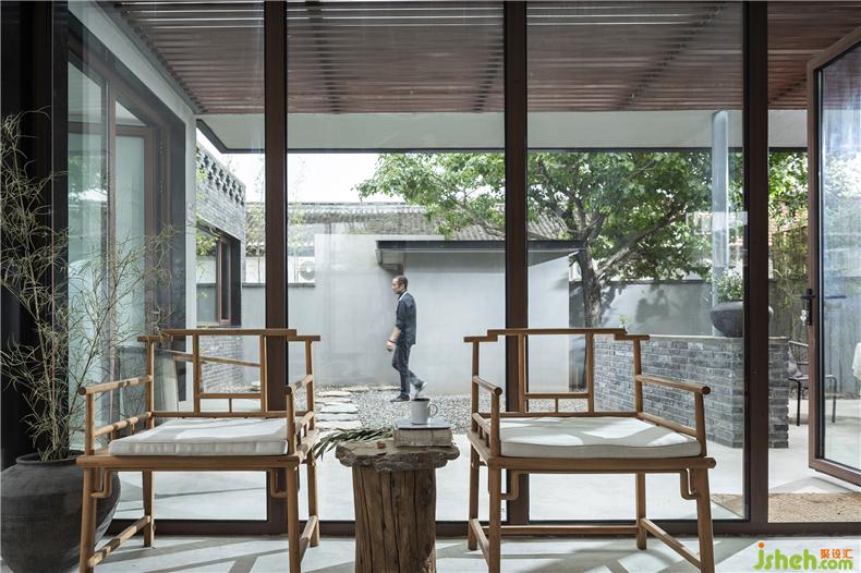 为了实现庭院视觉的穿透性和连贯性,建筑师以大面积玻璃作为首层南北立面的主要材料,置身室内,可观春华秋实、晨昏雾霭,听雨打石板地的清脆声响,让自然风光成为生活风景。而这种开放又与院外相隔,充分保障了居住空间的私密性,室内设计师这也是对传统民居内向性审美的一种延续。