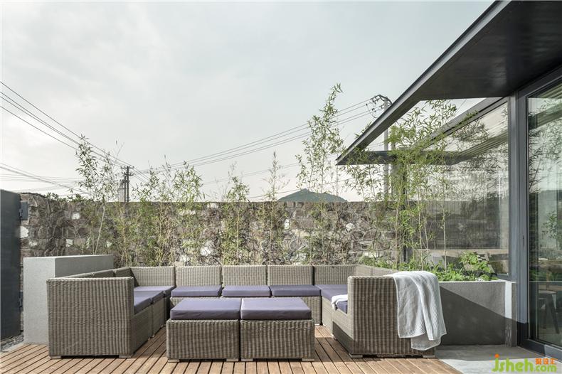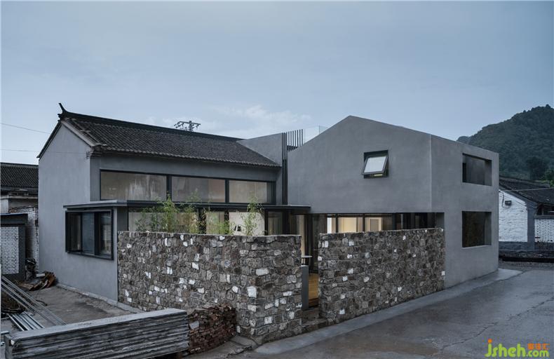 临街的院墙由砖石砌筑,与建筑墙体的素混凝土形成风格迥异的肌理,室内设计师建立了最直观的吸引力。建筑所在地除北侧外并无相邻建筑体,利用如此优势,建筑师将建筑视作“观看的机器”,在立面最佳观景位置设置开窗,让远近景致悉数“入画”。