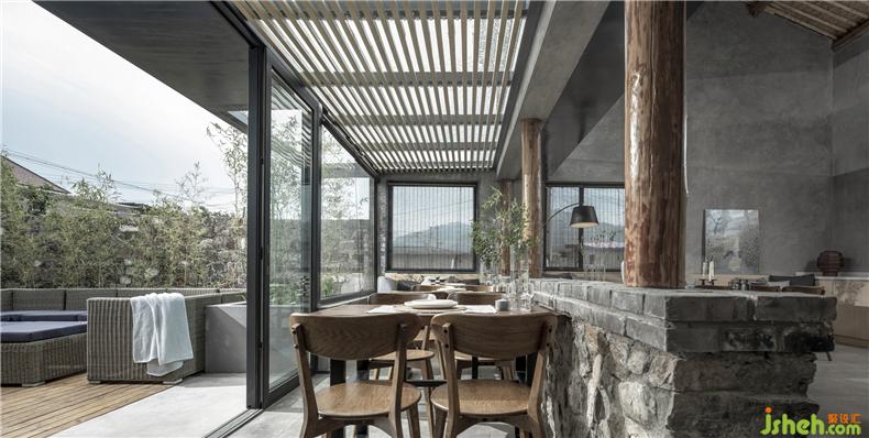 在张家庄村,全村没有一家饭店,想要用餐只能到3公里以外的另一个村。“小酒馆”是基于餐饮需求而诞生的经营形态。同样尊重场地文脉肌理,同样是二分半宅基地的面积,室内设计师同样是旧农宅改造,“小酒馆”比“红果树”更具公共属性。