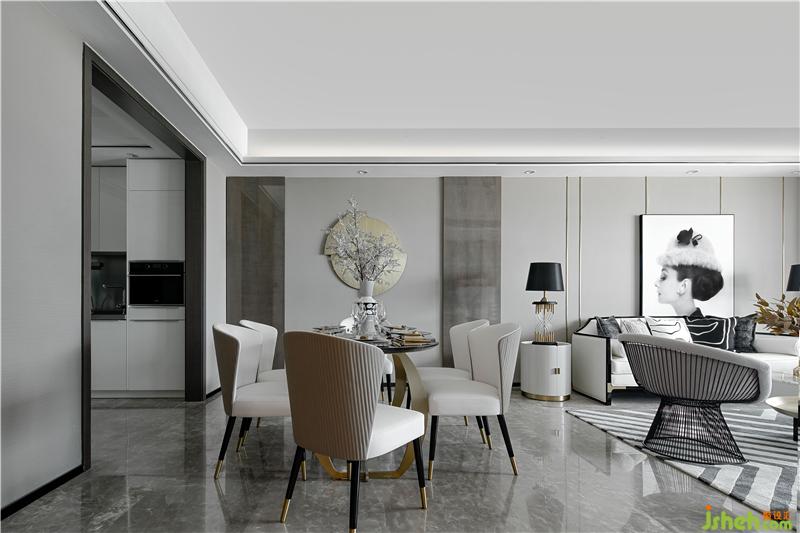 样板间紧靠珠江,从样板房的窗外望去,江对岸就是澳门。由于地理位置特殊,因此在思考这次的珠海装修设计软装设计方向时,设计师希望室内的窗户不是唯一的室内外联结,这种联结可以人为地再次被加深,并以此加深内外空间从地理到精神上的关系。设计师受到珠江江水波纹形态的启发,把波纹中的线条形态提取出来,珠海装修设计运用到内部空间中,线条从内部蔓延到的外部,所以线条的运用是此次设计的重点。