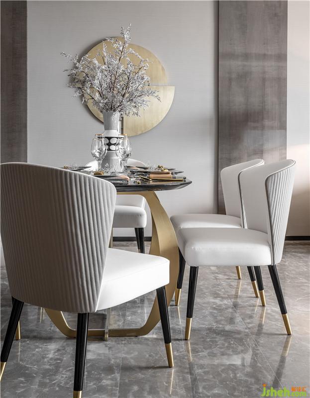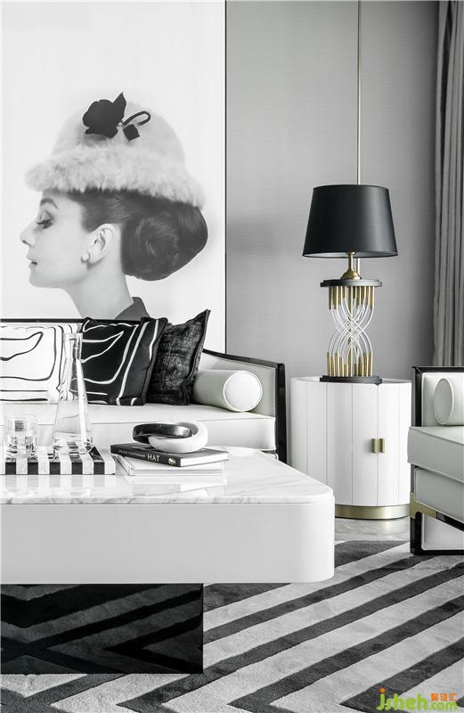 线条的排列方式从分布不均匀的形态到紧密有序地排列分布,每一种形式都会带给空间使用者不同地感受。考虑到在同样的形式下,在方正地空间中,小体量带来的不确定性和大体量传递的稳定感,设计师把水波一样的分布不均匀的线条形态留给小体量的物体,以期为空间增添水波一样地动态地感受,而让具有均匀分布线条的大体量家具加强空间中的稳定感。