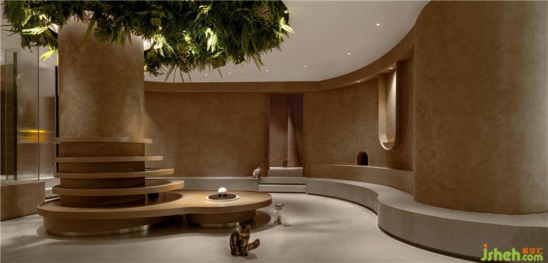 整个空间由人和猫共享,由等高线生成的巨型海岸线和梯田贯穿整个空间,广州餐厅设计既符合猫的活动习惯,也适用于举办各类主题活动。