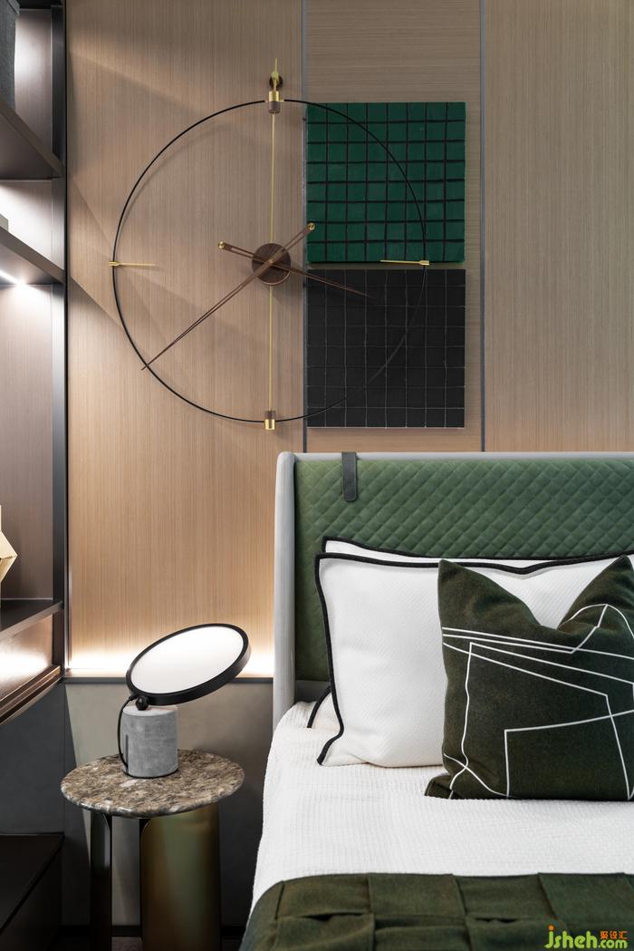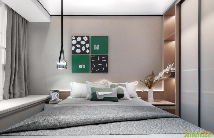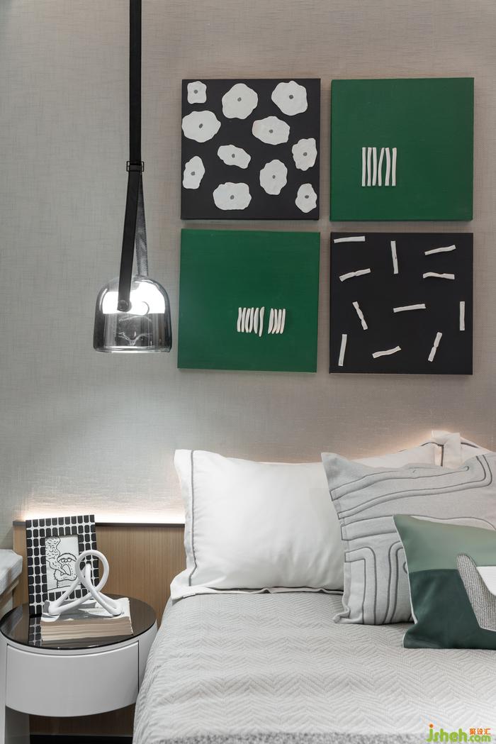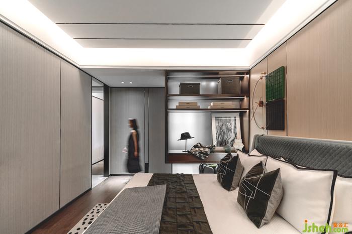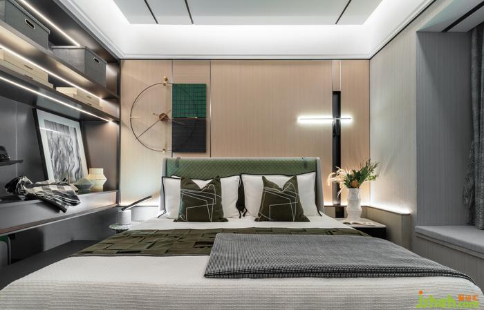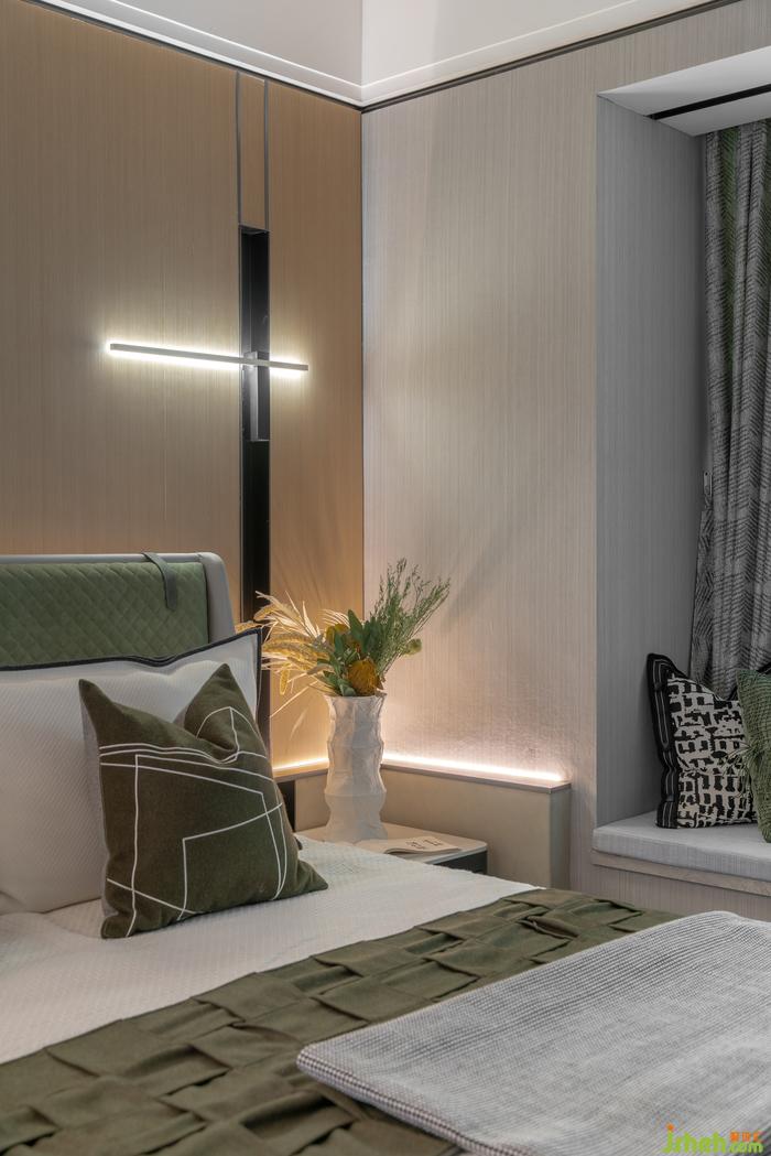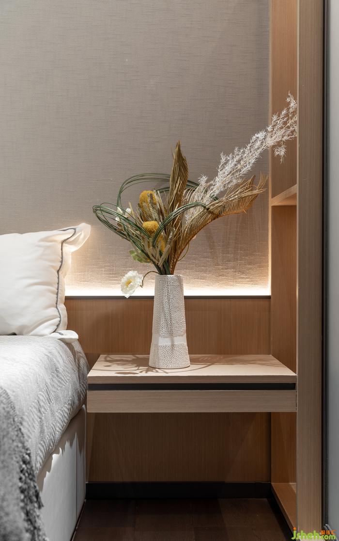 长辈房以稳重舒适为主,通过极简的样板间设计,展现了一个安静素雅的室内气质。