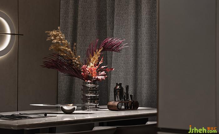 如果说设计是在描绘空间,那光与影则是最客地解读了空间灵魂。样板间设计光影随着灯光的开启而发生角度变化,明暗的变化,为介质染上不同色泽。