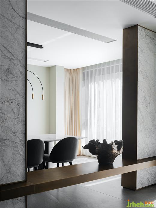 空间的过渡虚实借景,隔而不断,于通透之间形成对话,豪宅设计以东方之诗意若隐,回应现代主义之阔达。