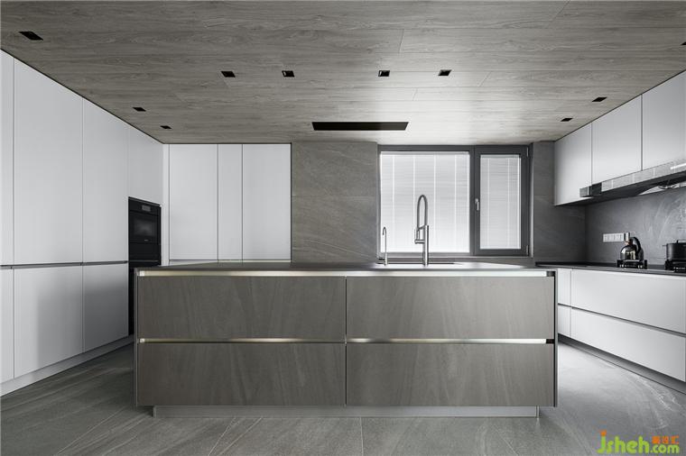 大块面的线条和色块让整个空间整洁大气。豪宅设计在灰与白相互呼应的空间中,探索东方哲思启迪下,材质和光影演绎的宜居实践,以空间写诗。