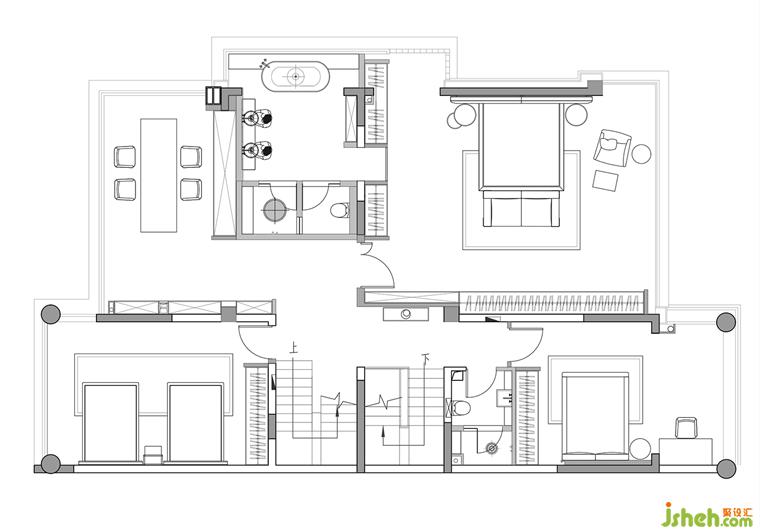 古人崇尚“大道至简”,生活亦主张“简”。这种追求简单、本真的智慧,豪宅设计在三层空间的色彩运用上,体现更加明显:广泛使用了原木、玻璃等简约素色,舍弃繁复的装饰,以木色与白色打造宁静淡泊、格物怡情的雅室格调。空间内干净利落的线条,充分展示了什么是空间之美。简约的气质,抛去繁杂,勾勒出轻松生活的模样。