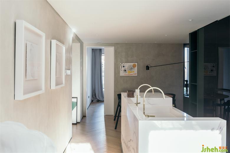 与楼下相比,一楼的整体设计要更为克制,男主人的黑白摄影作品定义了整个空间的基调,现代、自由、活力,南京家装设计所有的软装陈设都由此展开。灯具和家具的选择上以简洁明快的造型为主,其他墙面艺术品也抽象有力。