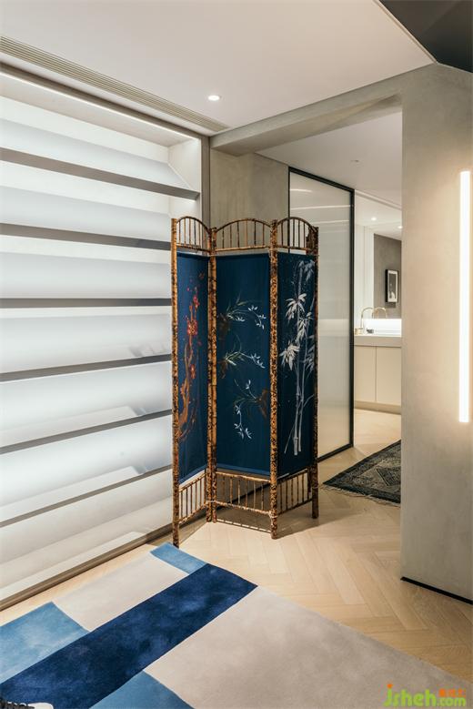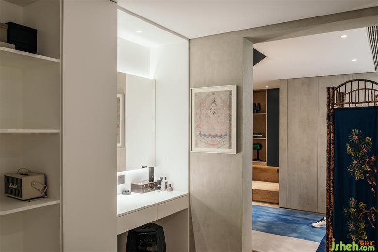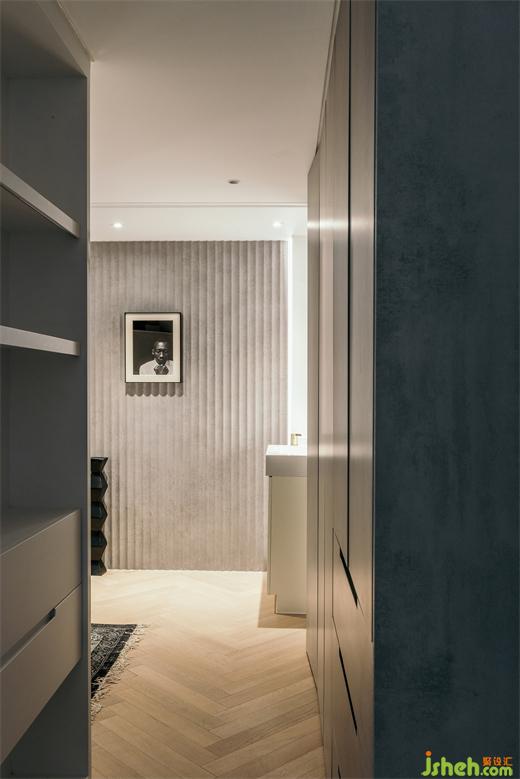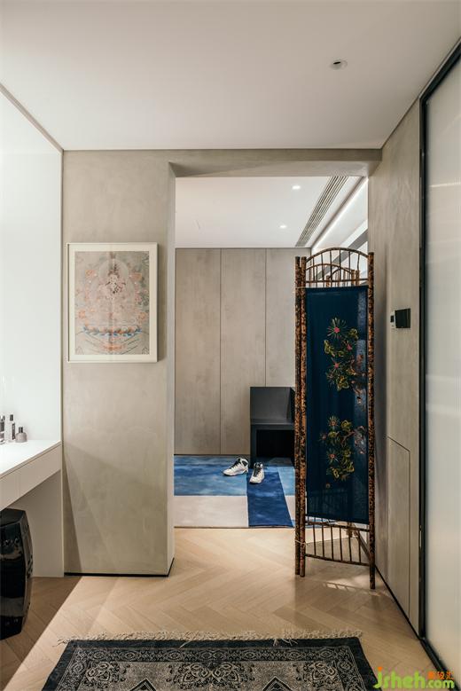 除了储藏间的门之外,下沉层没有一扇传统意义上的室内门。南京家装设计客厅和卧室之间只由玻璃推拉门隔开,平时都是开启的状态,狗狗可以毫无阻碍地在这里跑上几圈。