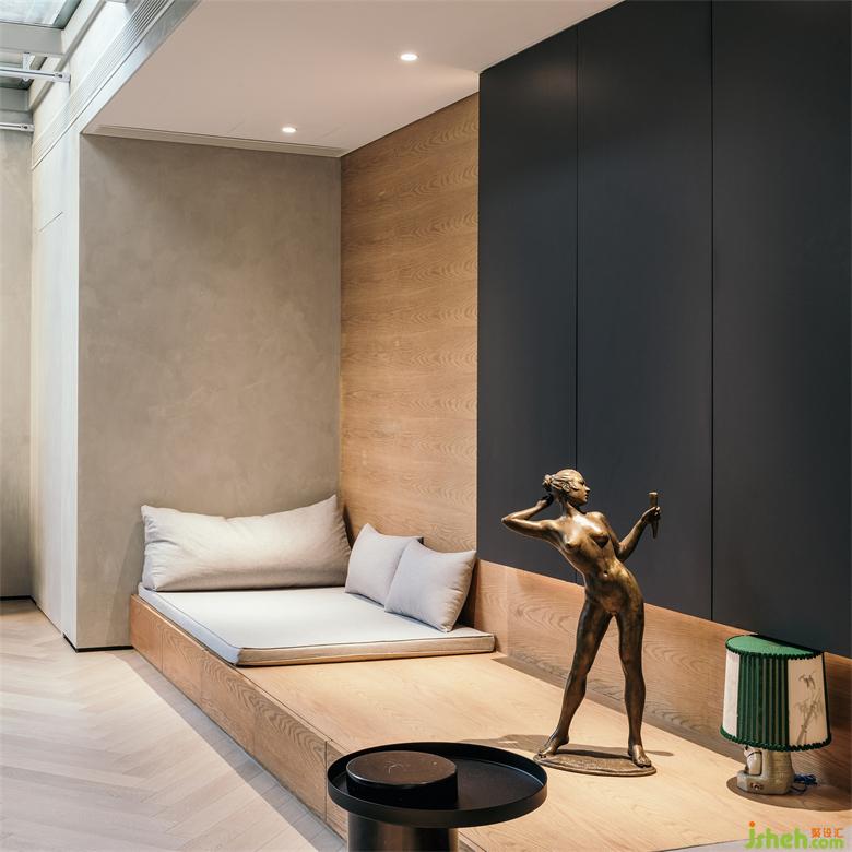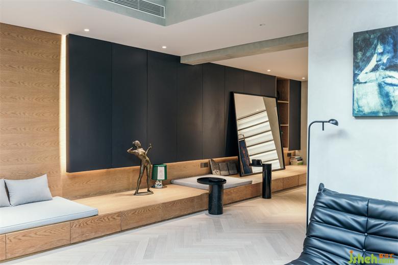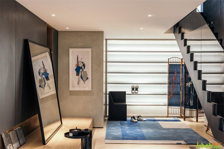 与一楼相比,楼下运用了更多鲜活的颜色,与这里更自由的空间布局相得益彰。从一楼下来,南京家装设计跟随软装陈设和色彩的逐渐变化,人们的心情也会不一样,从平静克制到彻底释放。