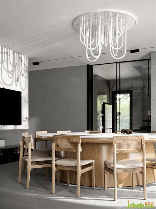 会所设计以平凡的材料构建不平凡的空间。整体空间大量运用素雅的天然白麻,客餐厅区没有过多繁琐造型,给人以平静休憩之感。楼梯过道区造型张扬,但却被麻石的属性赋予空间一分含蓄,平易近人也不乏气场。Build extraordinary space with ordinary materials. The overall space uses a large number of elegant natural white linen, and there is no too tedious shape in the dining room area, giving people a sense of calmness. The stairway the aisle area is full of shape, but it is given a subtlety space by the attributes of Mashi, and it is also easy to be in the field.