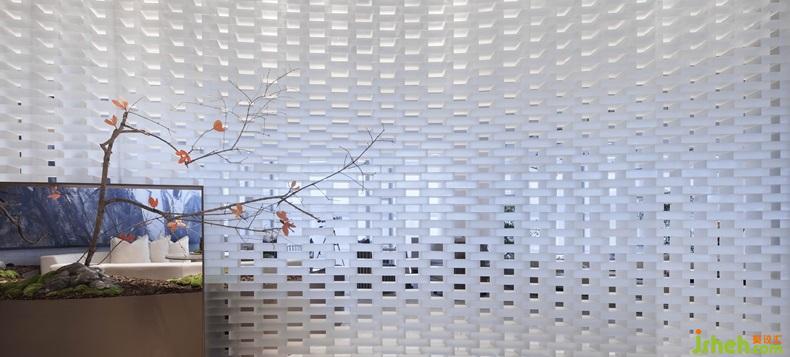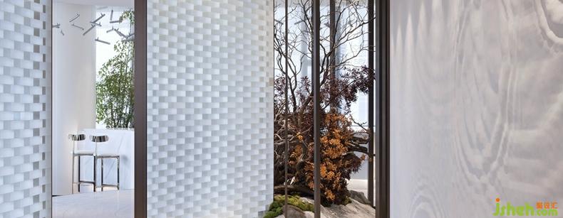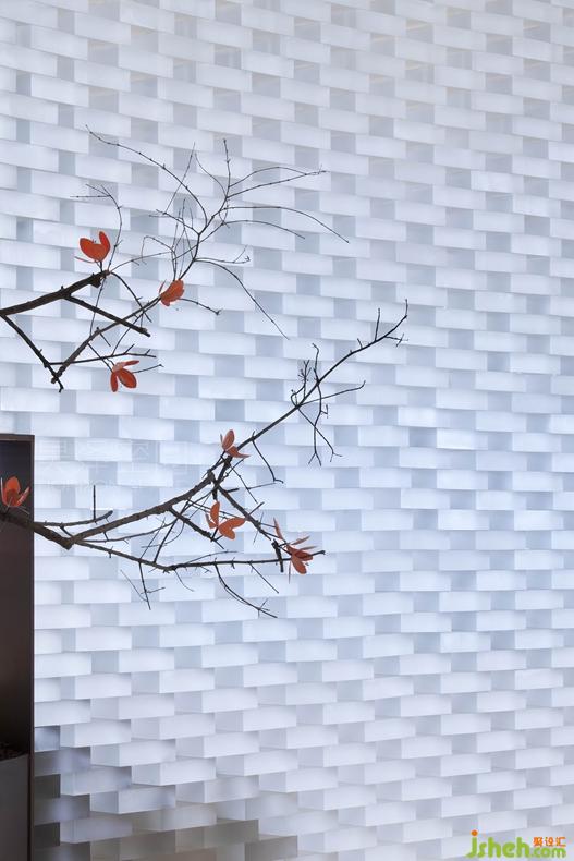 首先进入的空间是采用1800多块特殊定制的冰晶琉璃砖围合出来的弧型长廊,似隐还透,轻盈纯静,人影划过,如音乐般律动。精心设计的15步行程,让每个进来的人都在不自知中剥去外面世界带来的浮躁,回归平静的本心状态。
