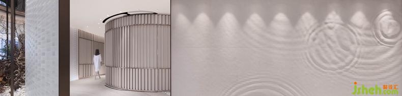 整个平面及空间采用仿生学设计,模仿雨滴涟漪的自然现象营造出圆润、相互交融的充满意趣的空间形式,同时也将平面的形式运用到门牌标识系统的设计中。