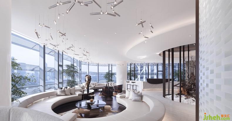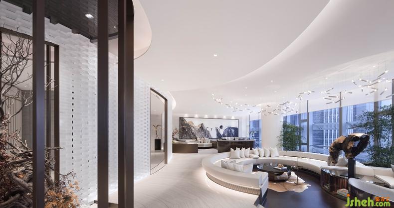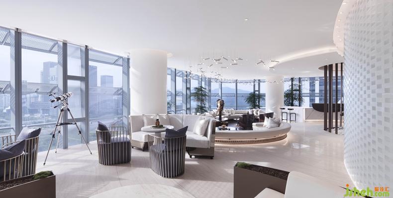 下沉式的涟漪状沙发组团,按游艇级别打造,同时方便俯瞰市民中心CBD中心公园的壮丽景观。