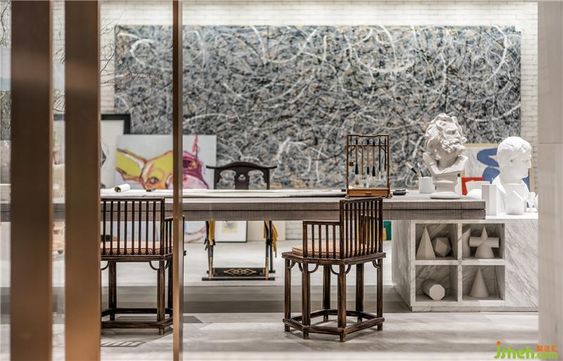 通过悬挑的玻璃过廊,遥老师在此“荷园“修习花道,常与闺蜜们相约于此,品茶、赏花,无论是春华秋实,还是嫩芽枯枝,都是一种从形走向神的自由之美,通过花道感受自然、生命的变化,在时光的流连中,守得一份从容和淡然。别墅装饰