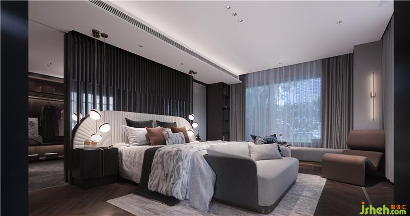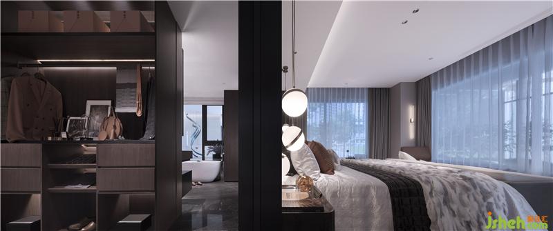 主卧巧妙布局,打造既能拥有亲密情感交流又可享受私密体验的空间。开放式的卫生间布局,将梳妆、护理、沐浴、衣帽起居、融为一体,可开可合的滑门则满足了使用者的不同需求。