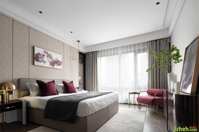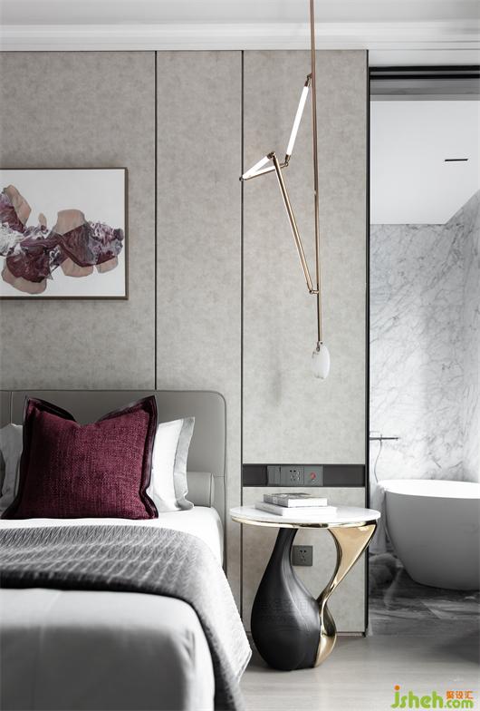 奢华大平层具有绝对的空间优势,主卧套间采用了洄游式空间设计,女王衣帽间、独立卫浴间,和卧室拥有适度的空间尺寸,让人可以完全的卸下防备,栖身于此。不仅如此,主卫还加配了双台盆,男女主人一起洗漱,从容优雅。