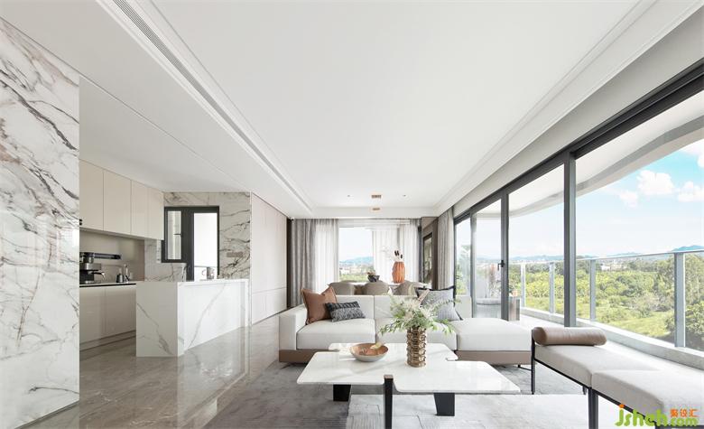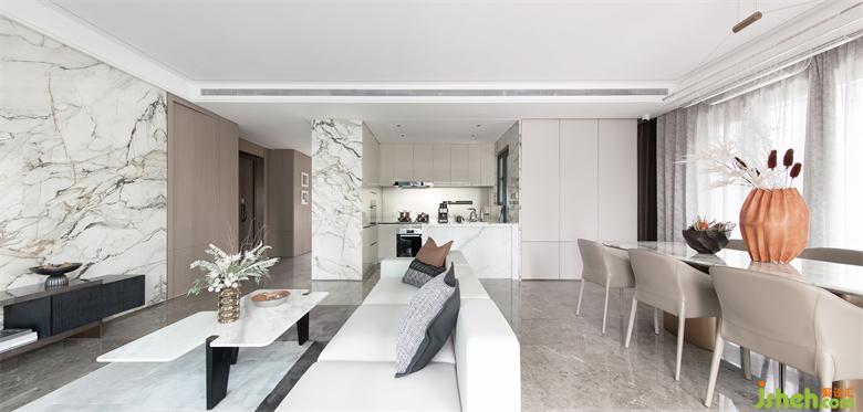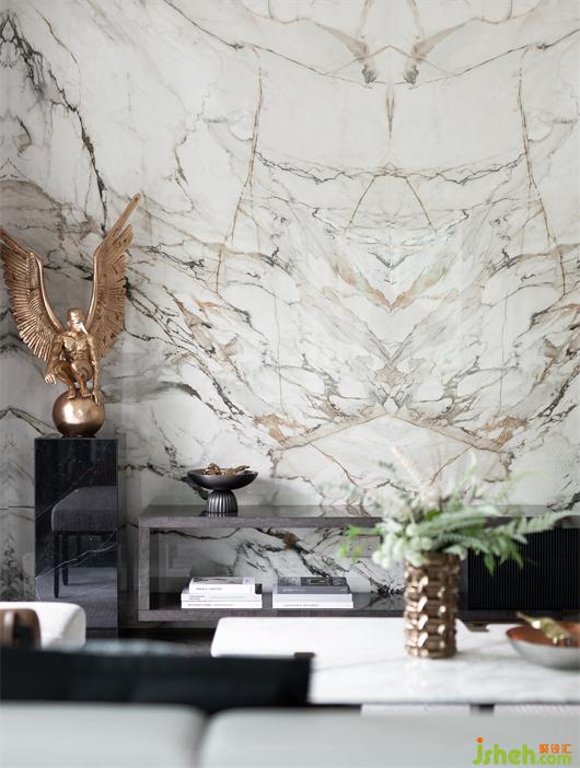 样板房设计而在我们的空间中,艺术不以刻意的姿态出现,可能是一进独立玄关所看见的那一整面鎏金大理石,百里挑一的材质和纹理凸显了入门的尊贵。