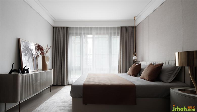 主卧套房的玄关透过半透明的玻璃相隔,它营造出一种曲径通幽的氛围,让主卧更具私密感。