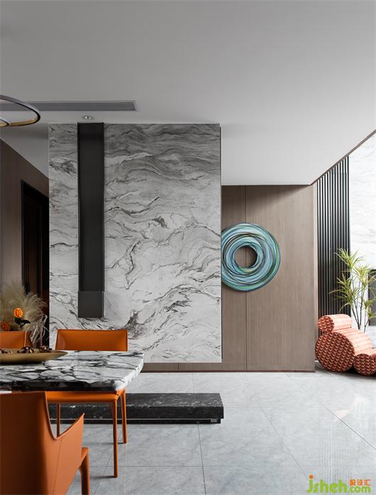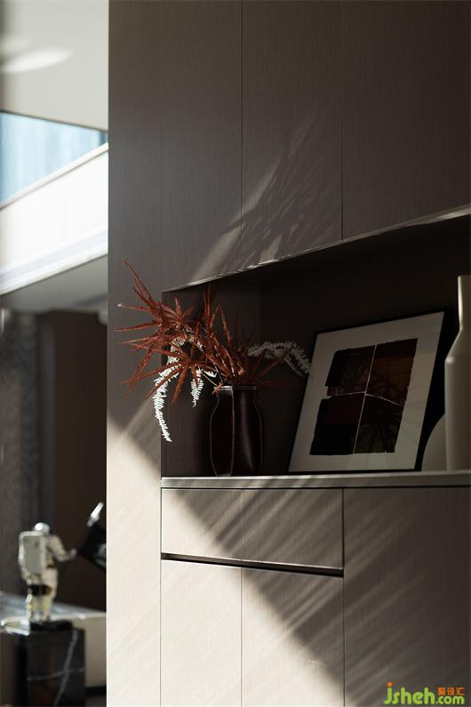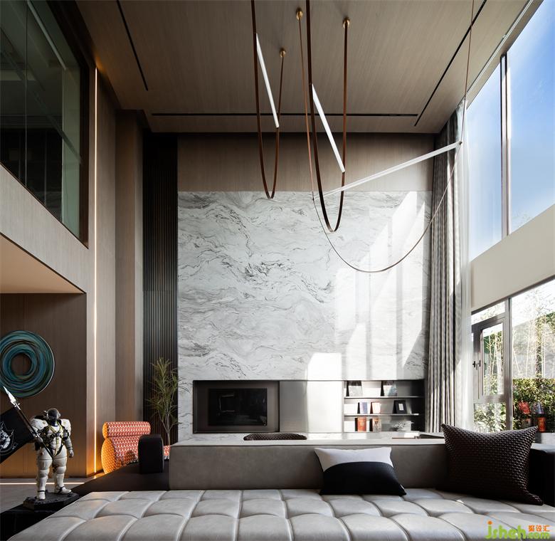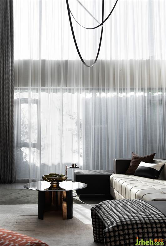 清晨一抹晨曦透过巨幅的落地玻璃窗洒入,样板房设计让整个空间顿时充满一种梦幻的朦胧感。