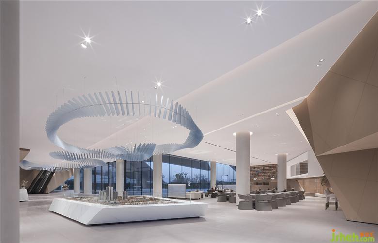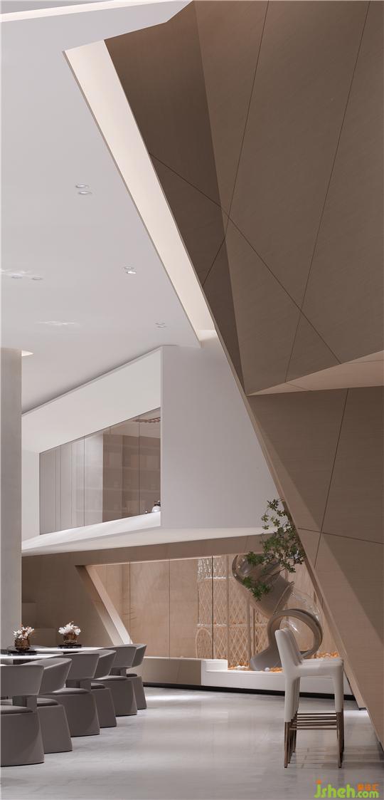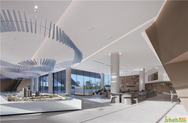 整个建筑仿佛被发掘出来的钻石,又似乎振翅欲飞的羽翼,璀璨而轻盈,到了室内空间,我们做的所有努力都是用严谨的逻辑将功能区块化,精准排布位置,然后随着建筑的势,应物适形。