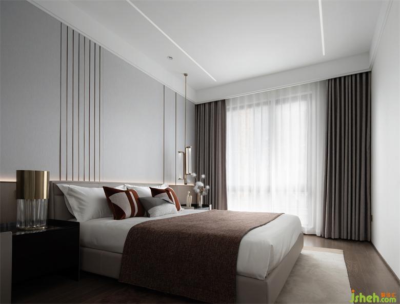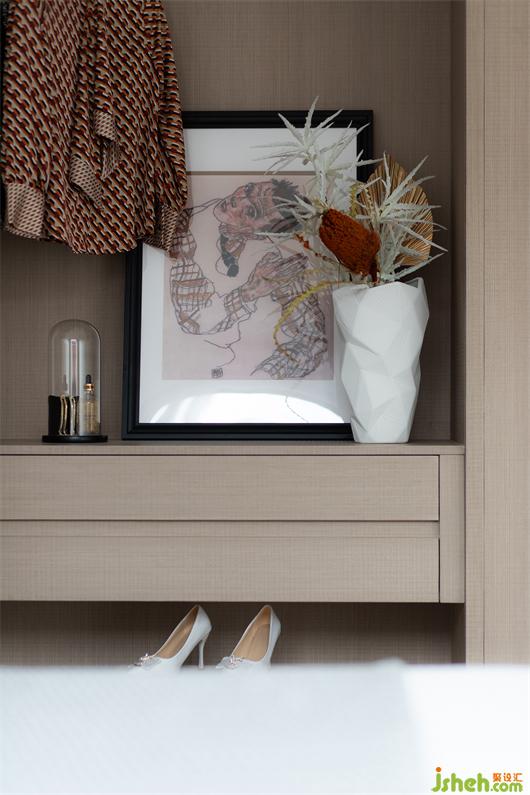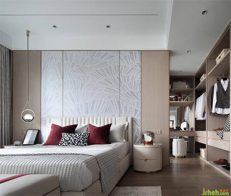 材质的延续像空间的脉络,从公共空间到私密空间,样板房设计浅色温润的木地板以及大面积的带有温暖手感的墙面,大面积的落地窗,再次的将“拾光留影”的框架搭建起来,令光影以温柔的姿态映射进卧室内。