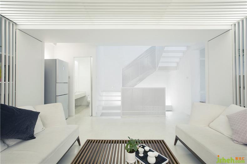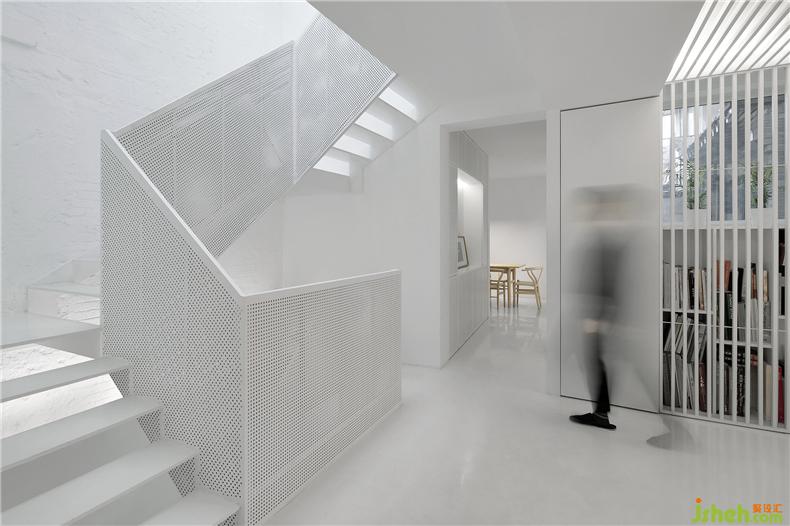 设计师的目标是在旧建筑条件下改善内部空间结构,别墅装饰重塑光亮、透明、整洁的内部空间气息,与老街区外观构成有趣的反差。面对复杂琐碎的现状问题,设计师以“白”作为基调,通过适当的拆除和加建整合室内界面,使空间回复到一个纯净、抽象的初始状态,利用变化的光环境和室外景观创造流动的空间感受。