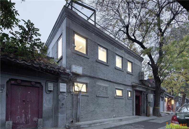 北京东城区胡同边的灰砖房子被改造为一对年轻夫妻的居所。别墅装饰这座砖混结构建筑是由前业主留下的,房子处于一条小胡同的最外边,里面还有五家住户。由于胡同邻里的私密性限制,老房子内部显得封闭、幽暗。