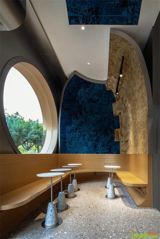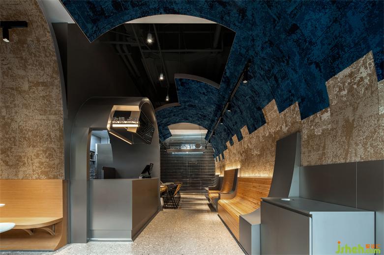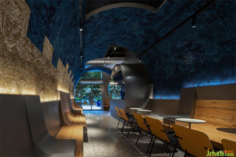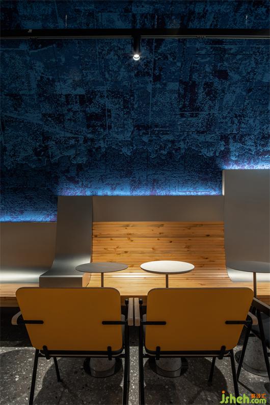经历新冠疫情后,拥有健康身体无疑是全民心之所向。首创分子果汁概念的野萃山,有别于市面上的鲜榨果汁,对果汁营养价值和口感追求极致。位于深圳福田区的马成时代店设计提出很“野”很健康的理念。入口狭窄,内里别有洞天。HOPE DESIGN尚希设计将果汁流淌的意向化为Z时代年轻人热爱的冲浪运动,在蓝色筒舱里创造一方海纳百川的自由世界。