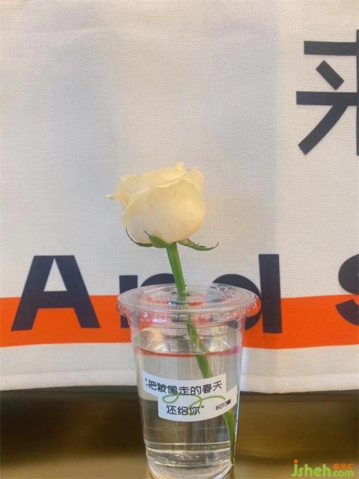 “昨天我们的伙伴小汝发现来门店送货的小姐姐是聋哑人,然后送了一朵我们试营业收到的花,她很开心,这一天是被治愈的。所以我们准备把所有的花分享给到店的朋友,把因为疫情被偷走的春天还给你”
