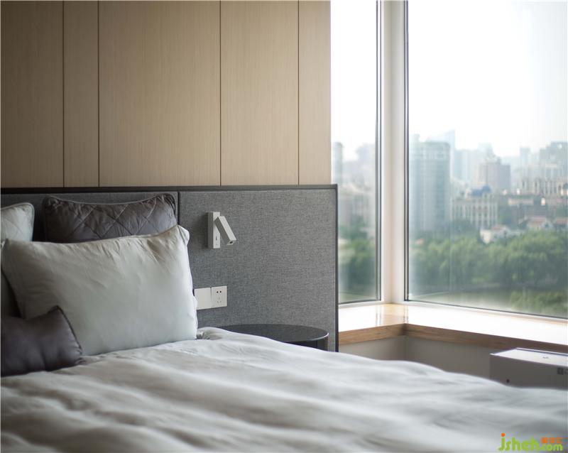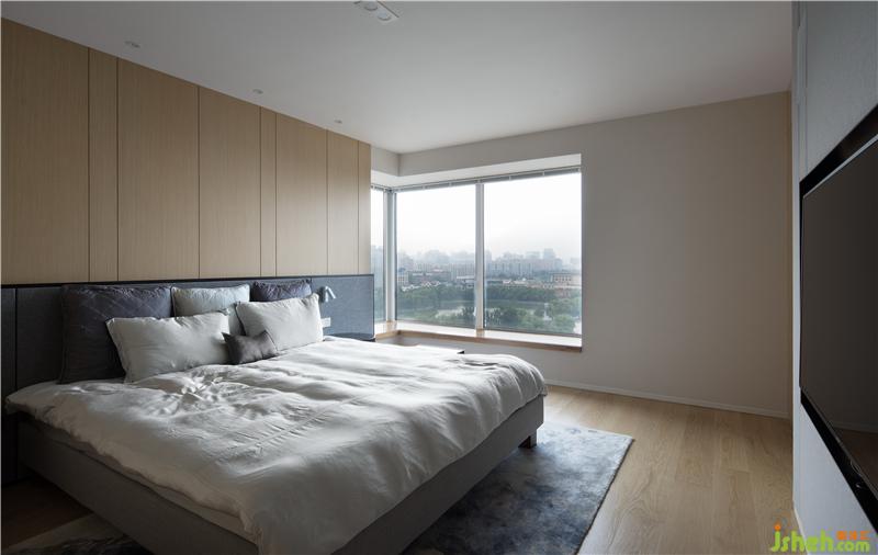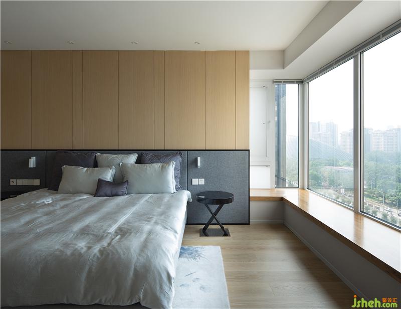主卧采用黑白灰色调搭配橡木饰面,展现空间主人的气质。