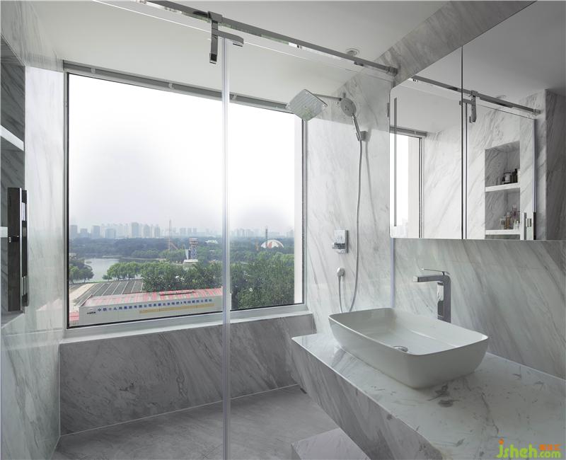 业主本人旅居日本多年,受日本文化影响,非常希望自己家里面的卫浴空间是贴近自然切放松身心的,所以没有选择成品浴缸而是效仿日式户外汤池来做的室内泡池装修设计。